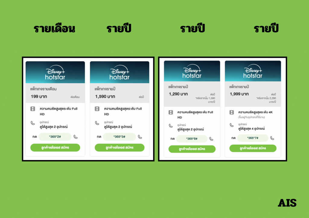 รายปี: 1,590 บาท (ความคมชัด Full HD, รับชมได้ 2 อุปกรณ์)